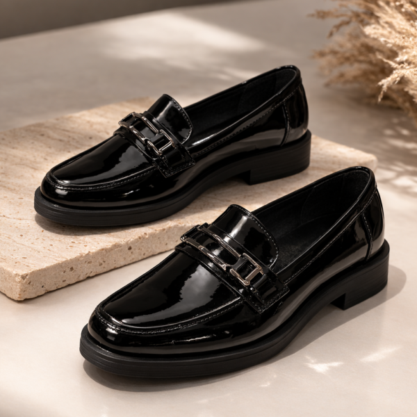 Լոֆերներ լաքապատ կաշվից՝ ընտրություն նրանց համար, ովքեր սիրում են փայլուն, հավաք տեսք ու միաժամանակ ուզում են հարմարավետ քայլք ամեն օր։ Այս մոդելը ունի slip-on կառուցվածք, այսինքն՝ հագնում եք արագ՝ առանց կապիչների, իսկ լաքապատ մակերեսը կերպարին տալիս է կոկիկ շեշտադրում՝ գրասենյակային ու քաղաքային ոճերի համար։